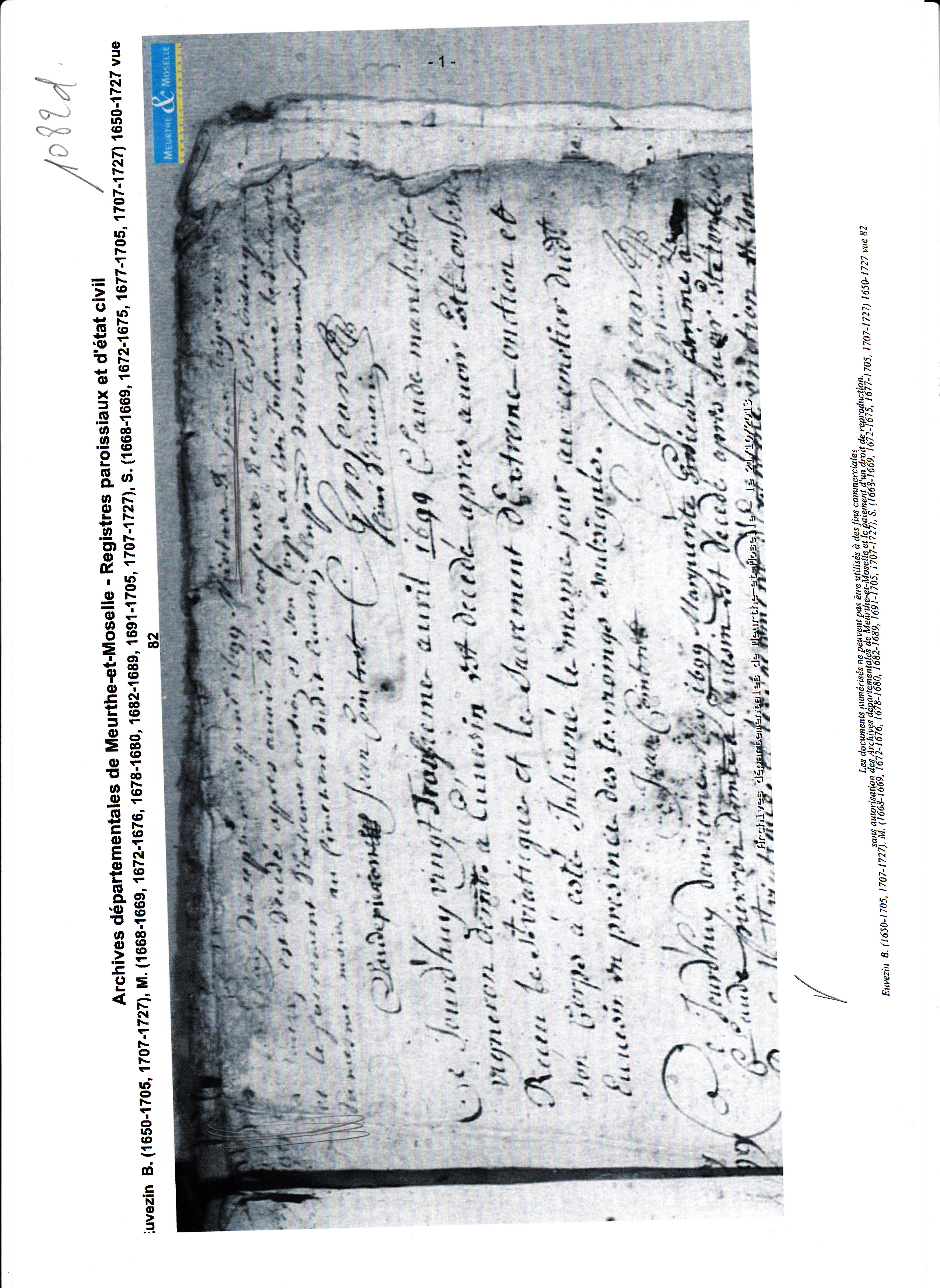 Décès : avant 1720 à Euvezin 54470