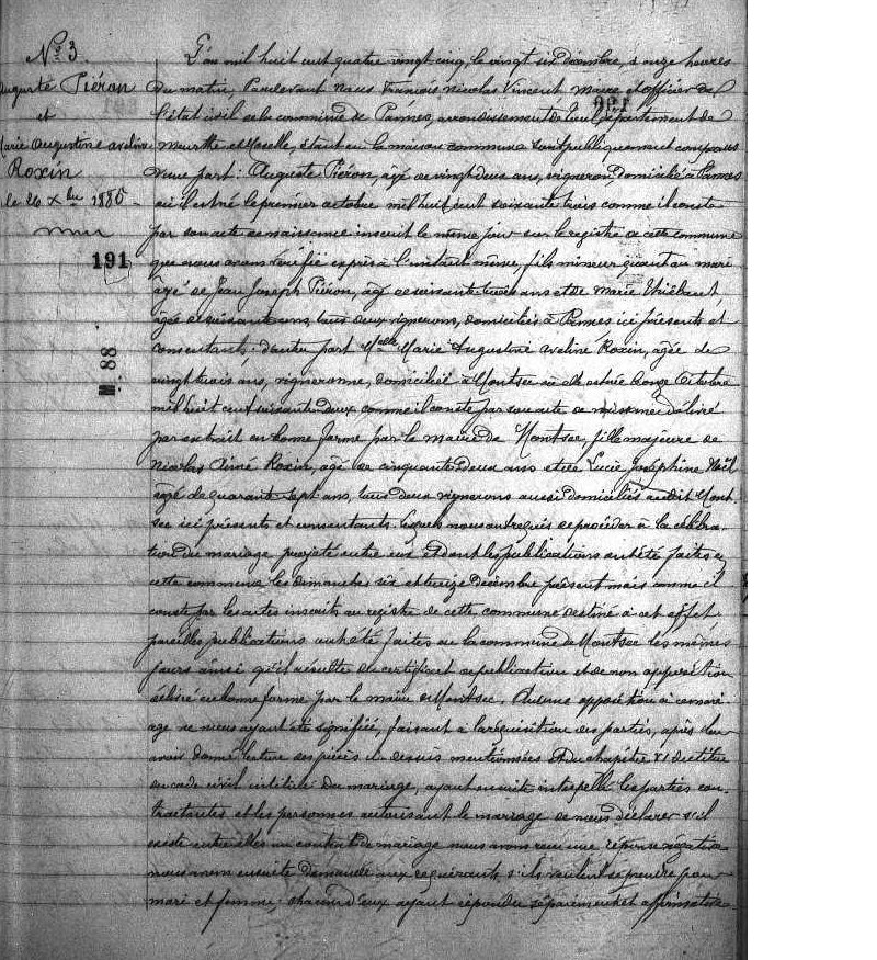 Mariage : 25 mars 1878 à Pannes 54470
