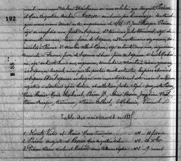 Témoins :PIERON Jean Prosper ( 1859 - 1890 )