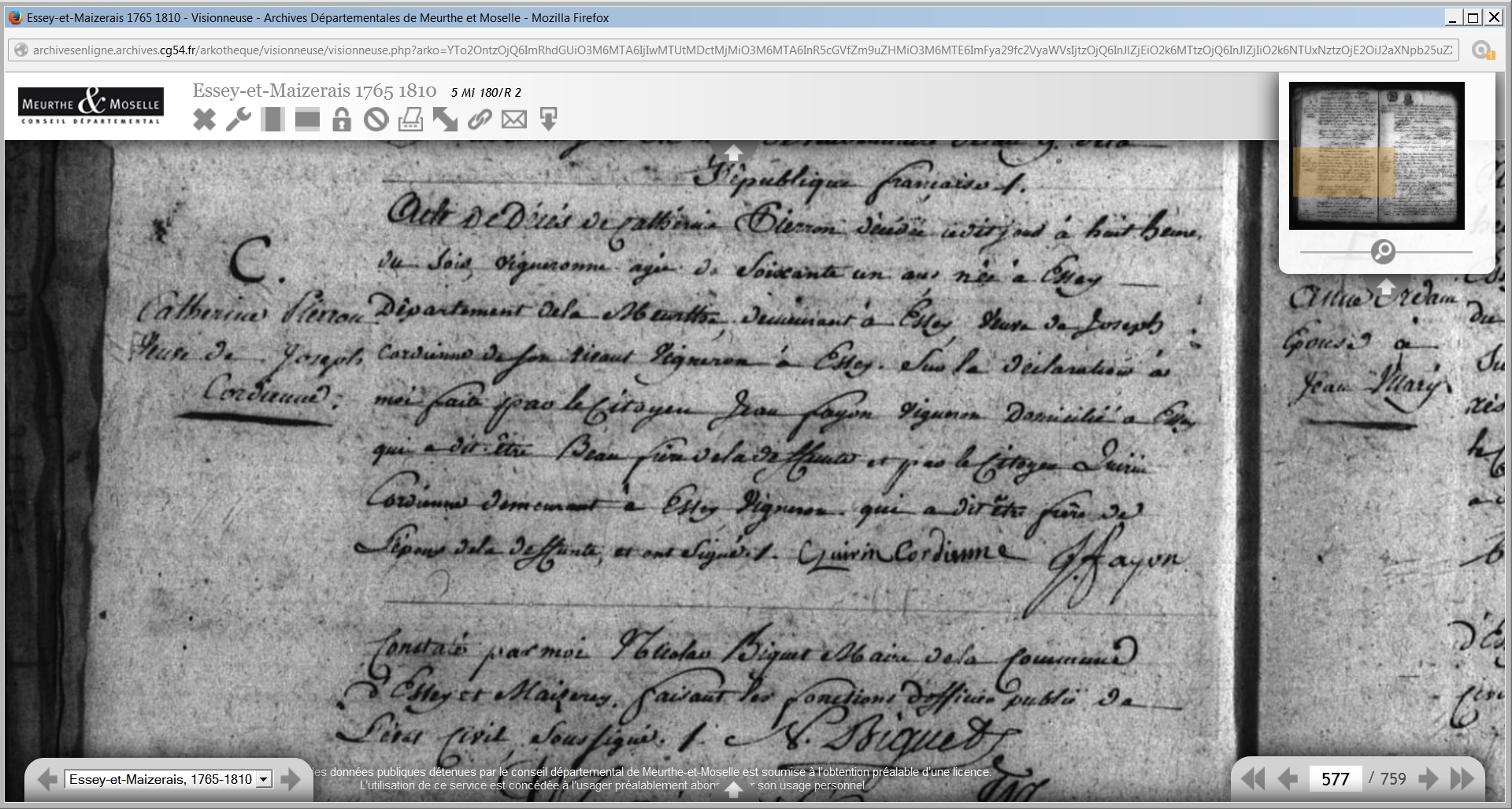 Décès : 5 octobre 1800 à Essey et Maizerais 54470 ( Source )