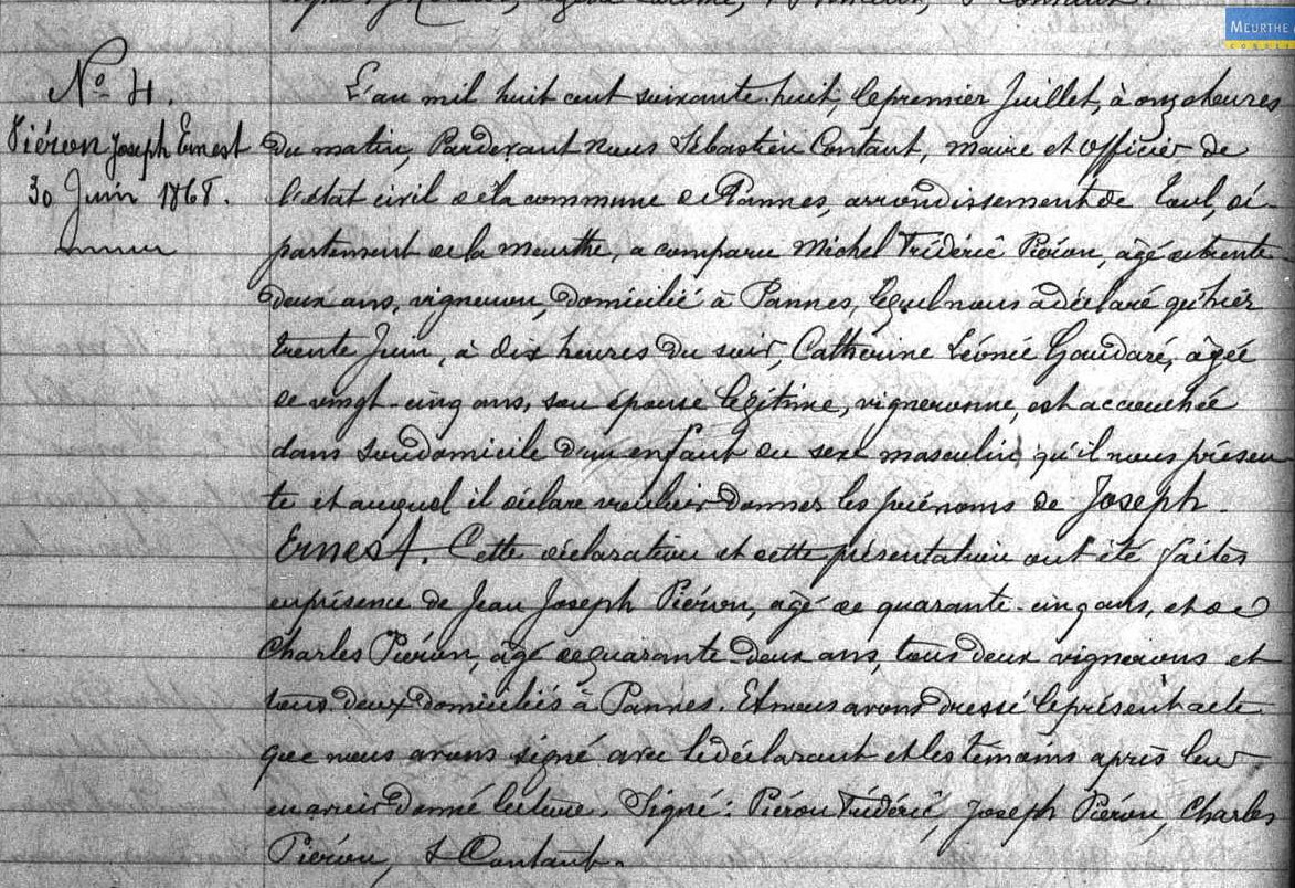 Naissance : 30 juin 1868 à Pannes 54470 ( Source )
