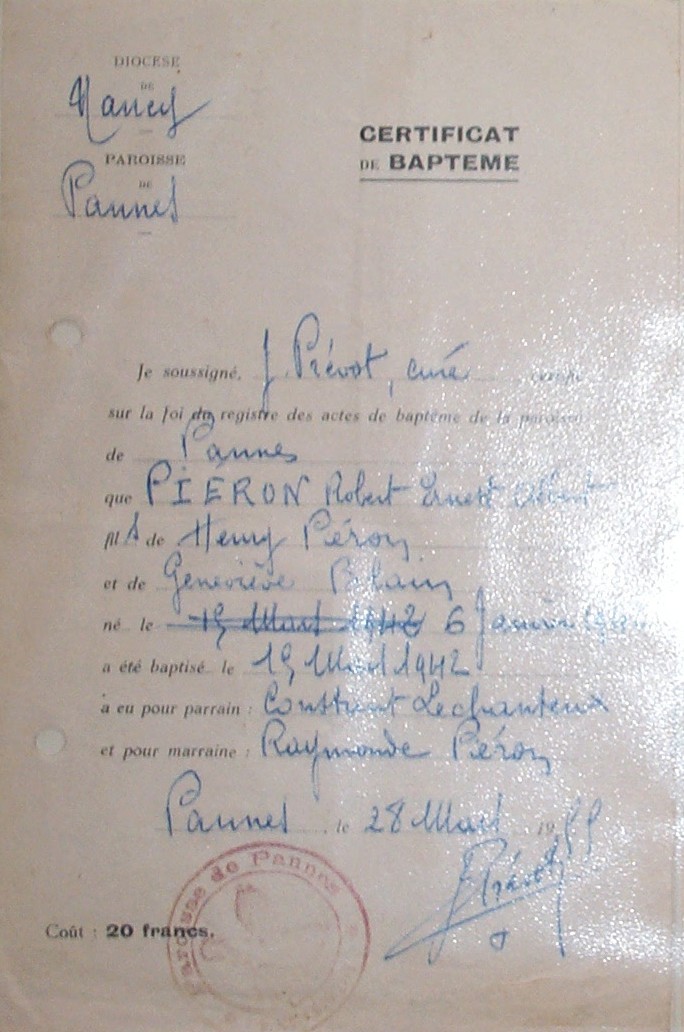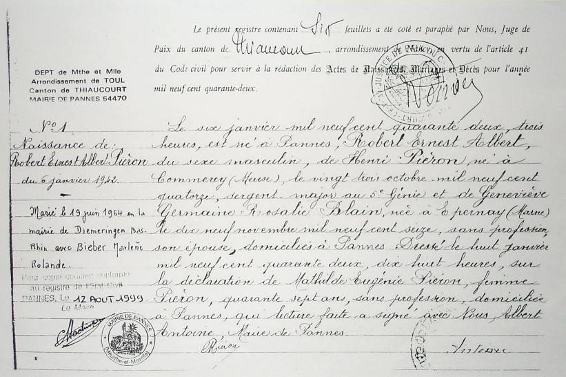 Témoins :PIERON Raymonde Marie Juliette ( 1922 - ? )