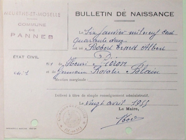 Naissance : 30 novembre 1922 à Pagny-sur-Moselle 54530