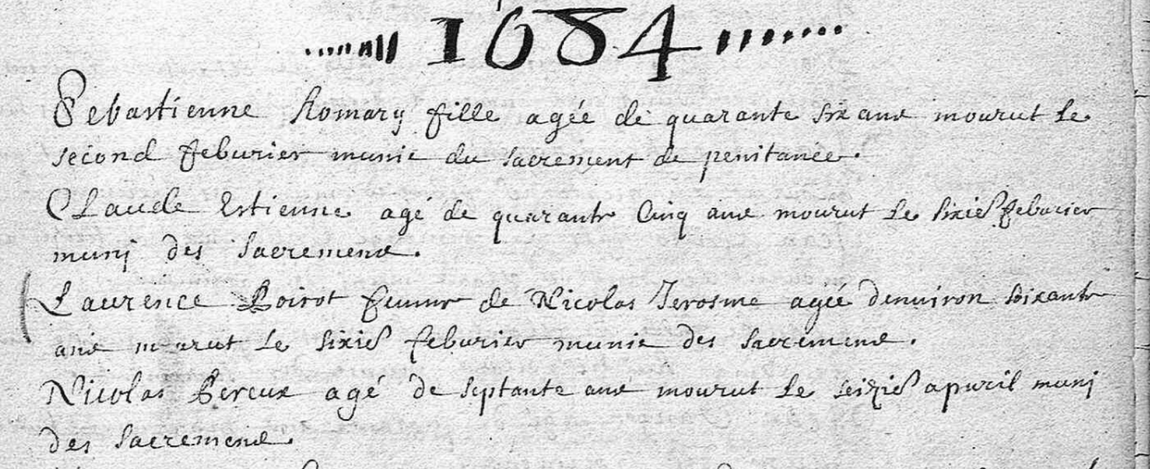 Décès : 6 février 1684 à Bellefontaine 88370 ( Source )