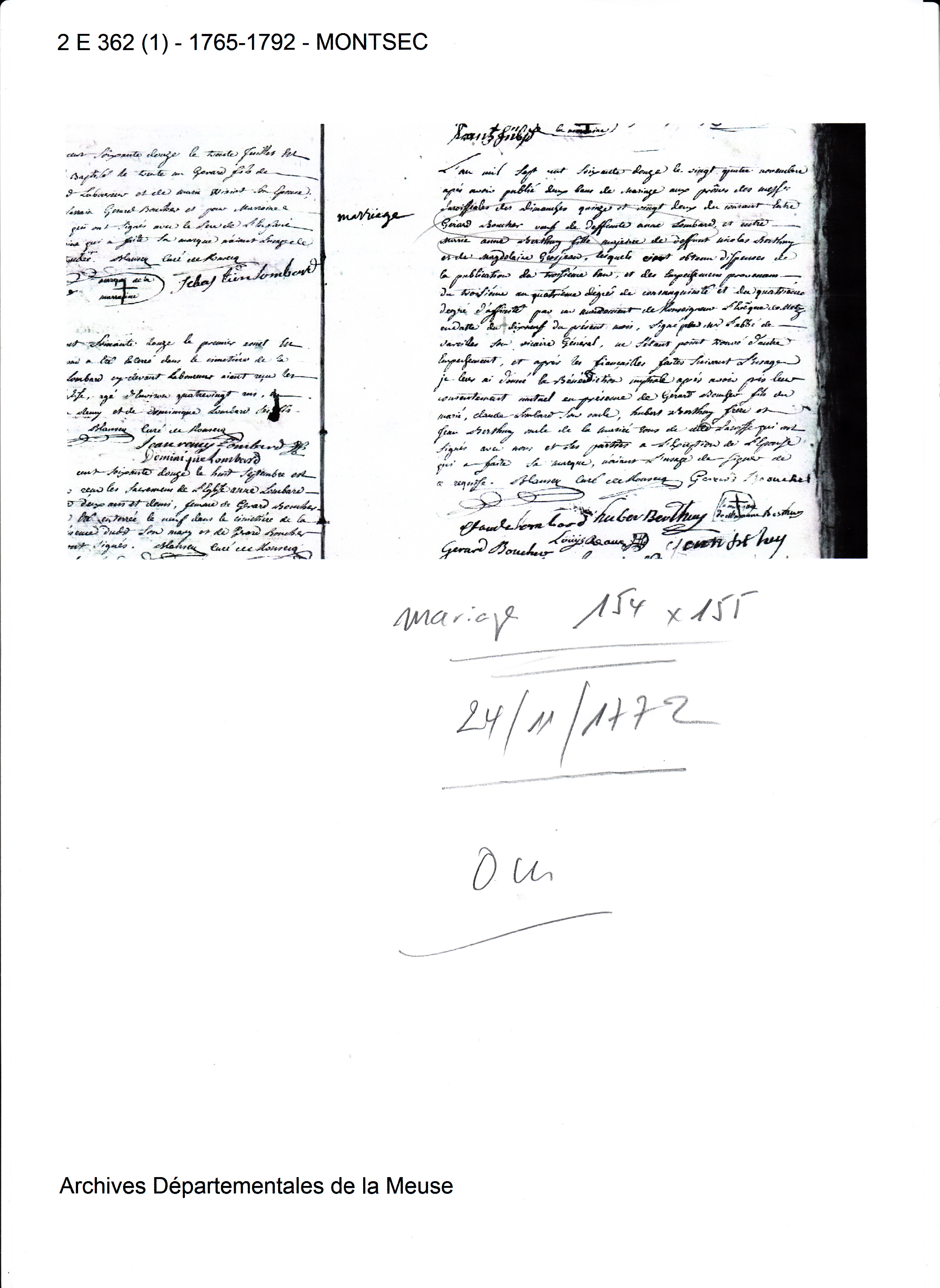 Mariage : 24 novembre 1772 à Montsec 55300 ( Source )
