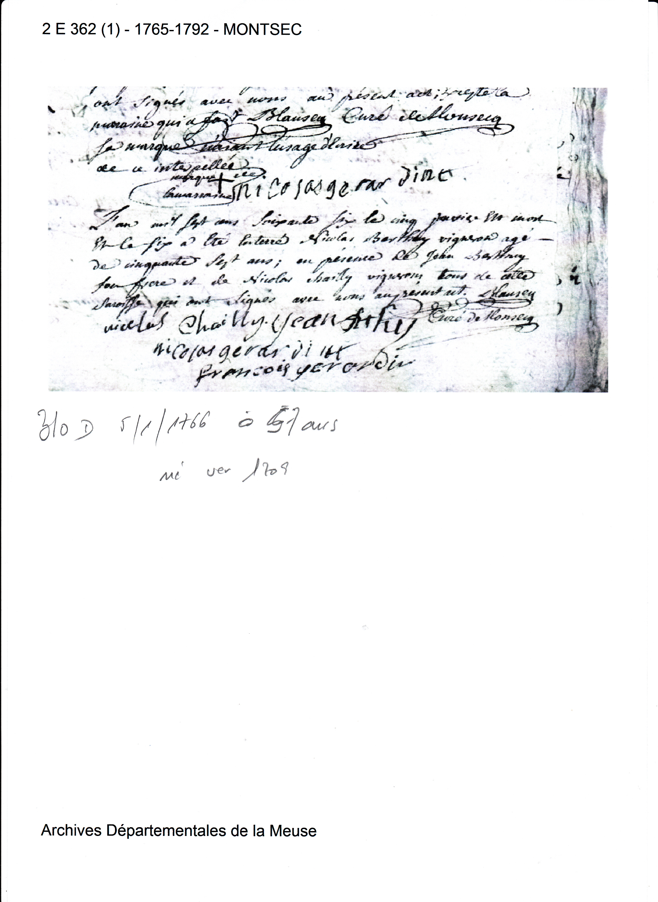 AD pas avant 1765Décès : 5 janvier 1766 à Montsec 55300 ( Source )