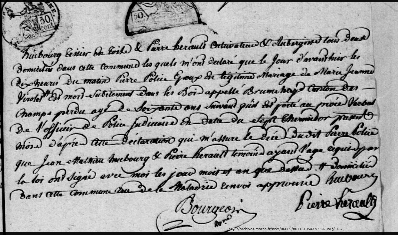 Pas trouvé à ServonDécès : 26 juillet 1800 à Moiremont 51 ( Source )