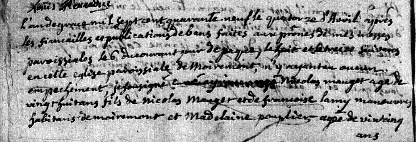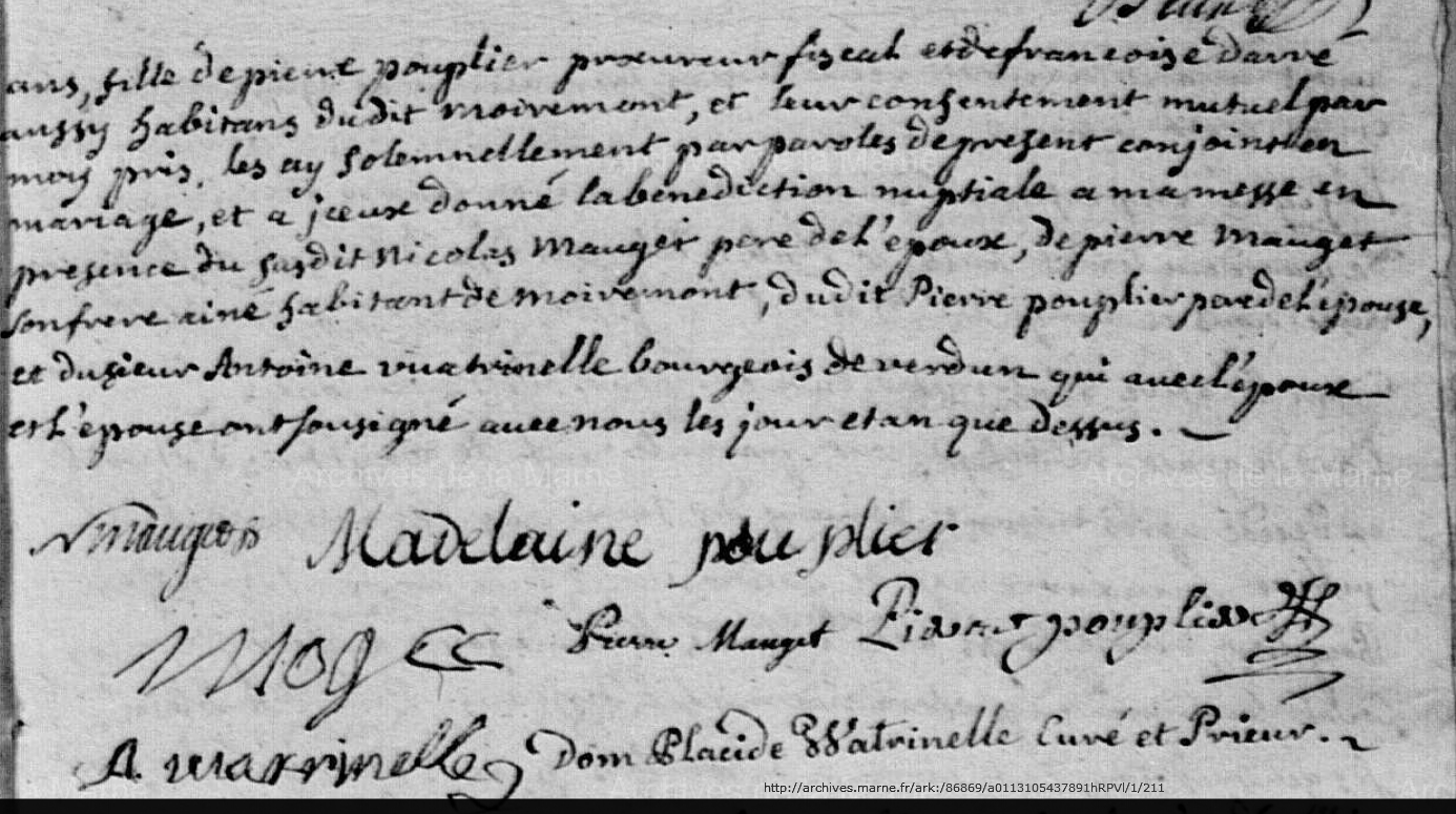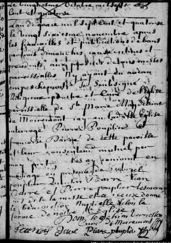 Mariage : 26 novembre 1714 à Moiremont 51 ( Source )