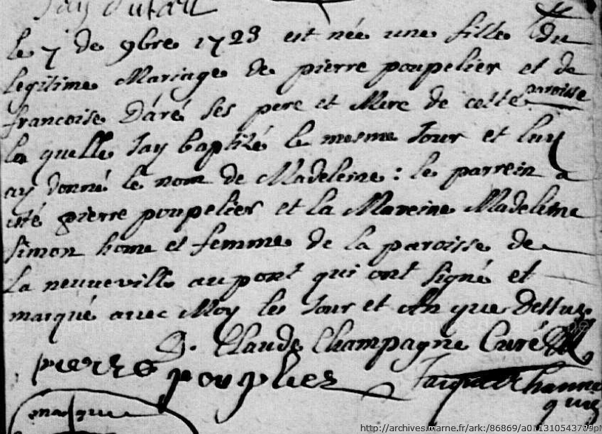 Naissance : 7 novembre 1723 à Moiremont 51 ( Source )
