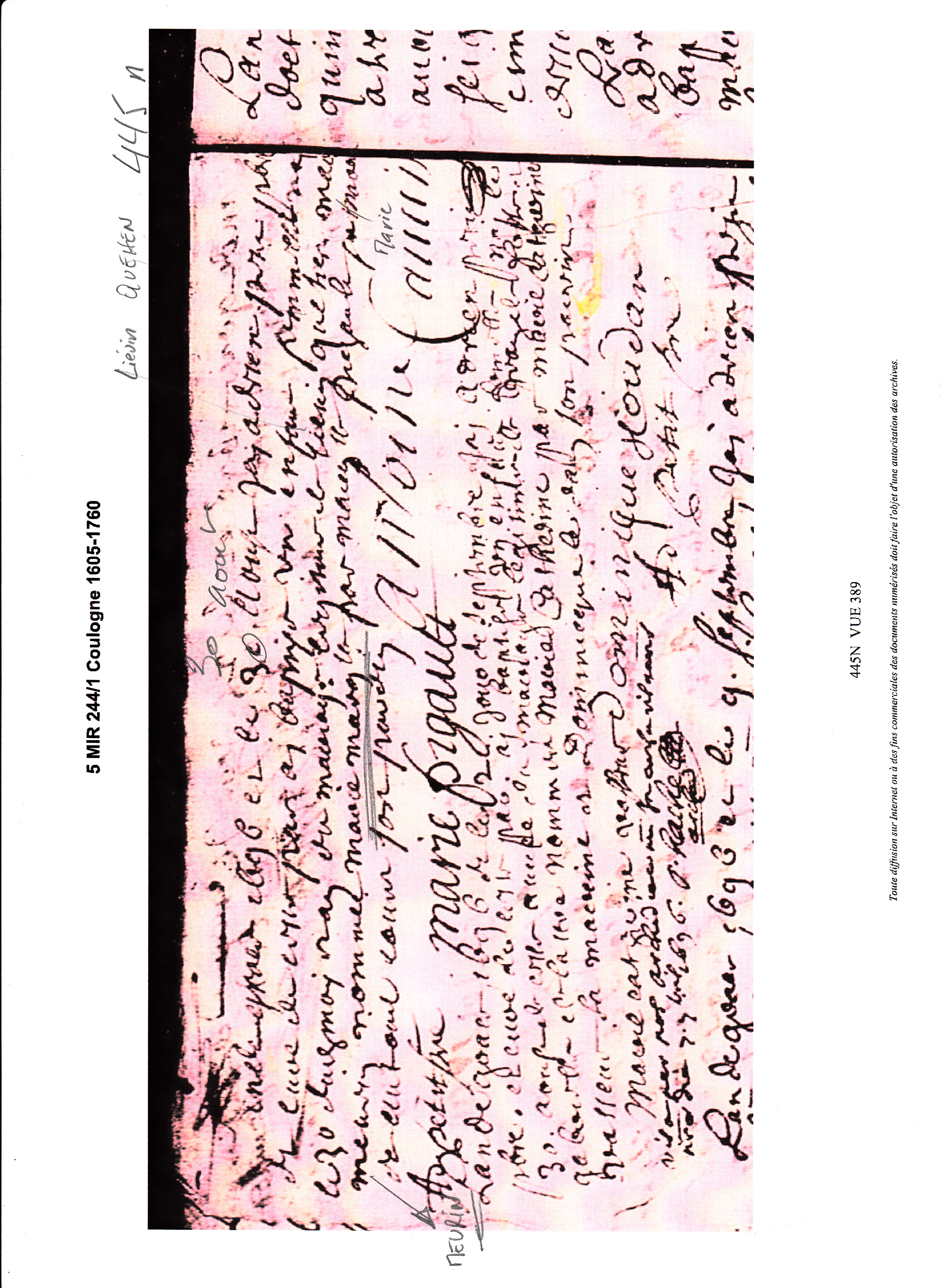 Naissance : 30 août 1696 à Coulogne 62137 ( Source )