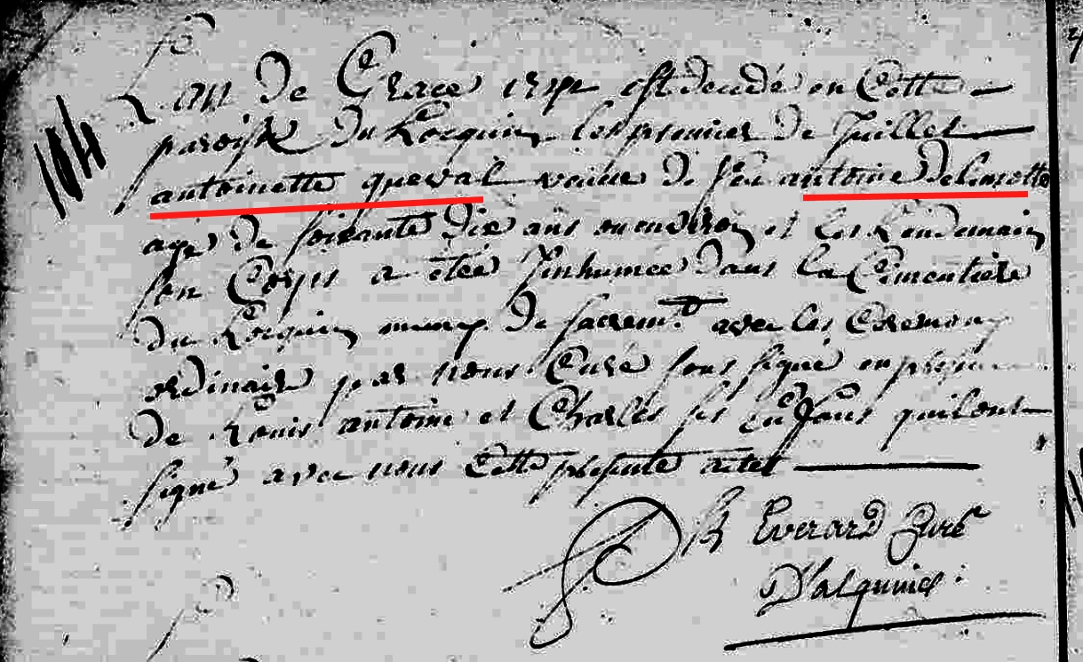 Mère : QUEVA Antoinette ( ? - < 1643 )