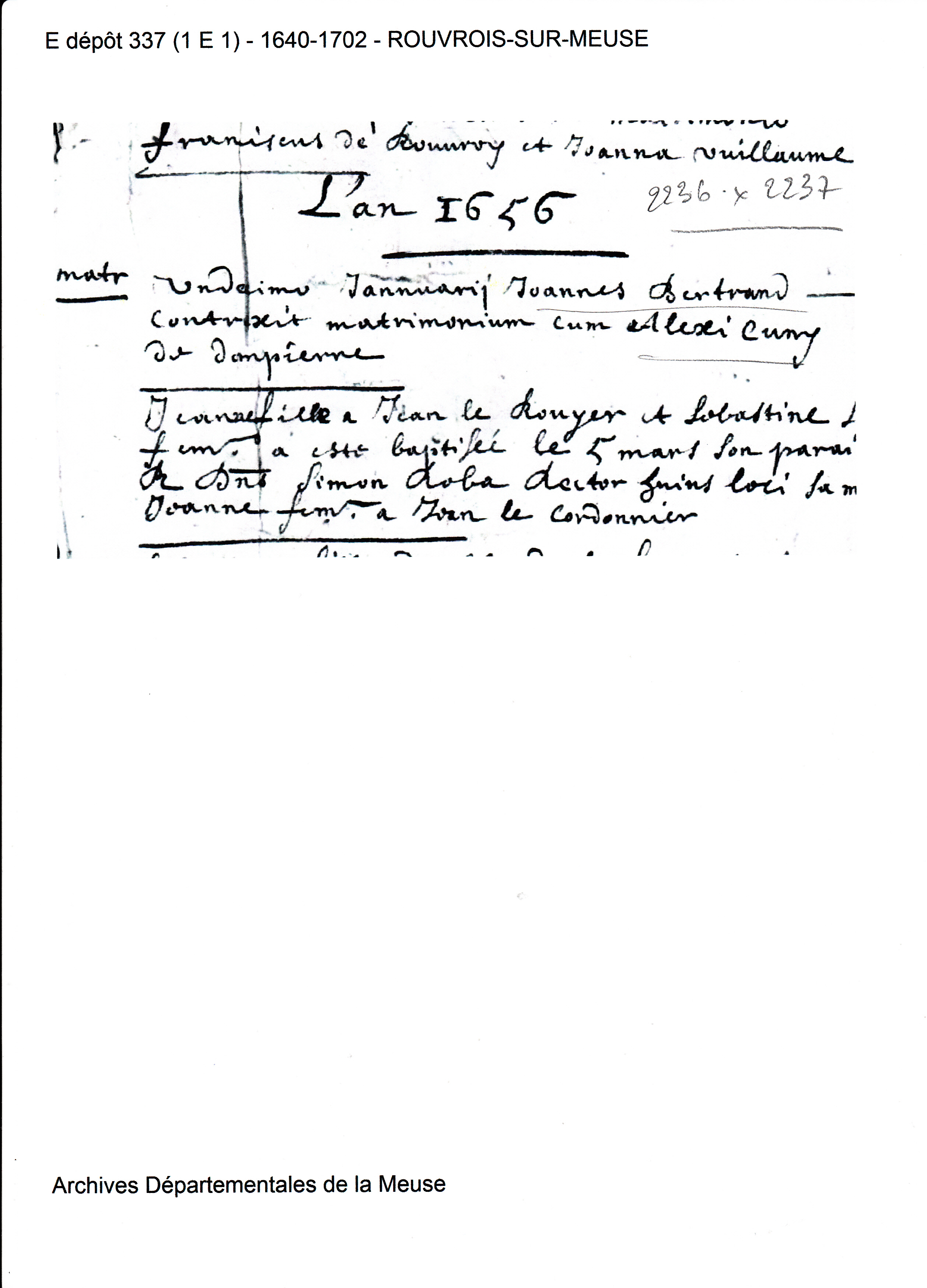 Mariage : janvier 1656 à Rouvrois sur Meuse 55300 ( Source )