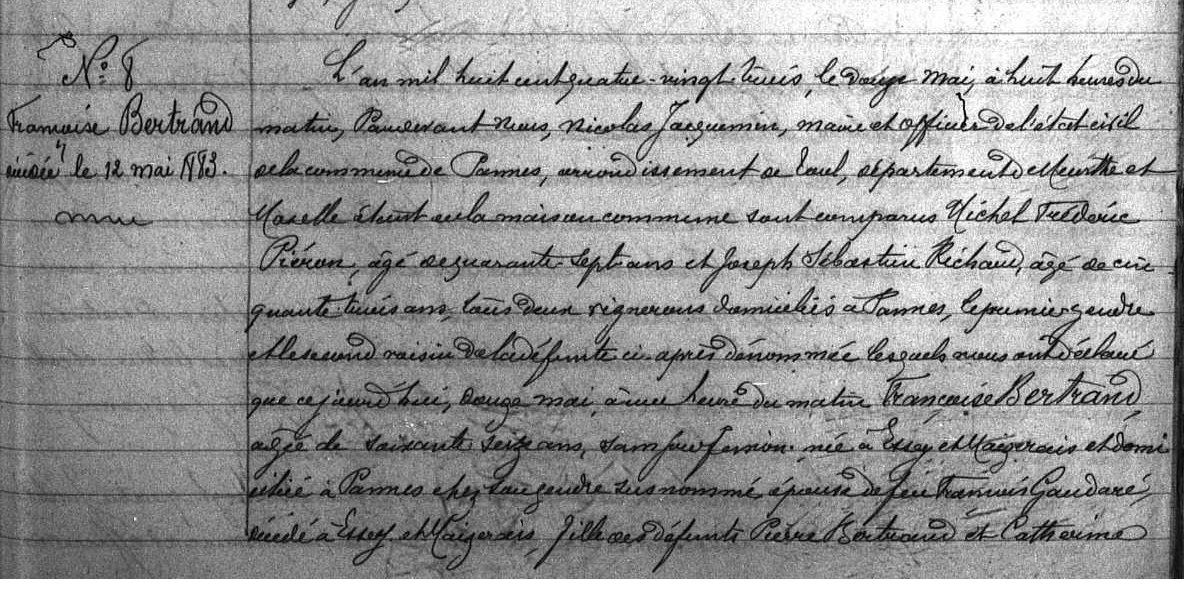 Pas possible de trouver l'acteDécès : 12 mai 1883 à Pannes 54470 ( Source )