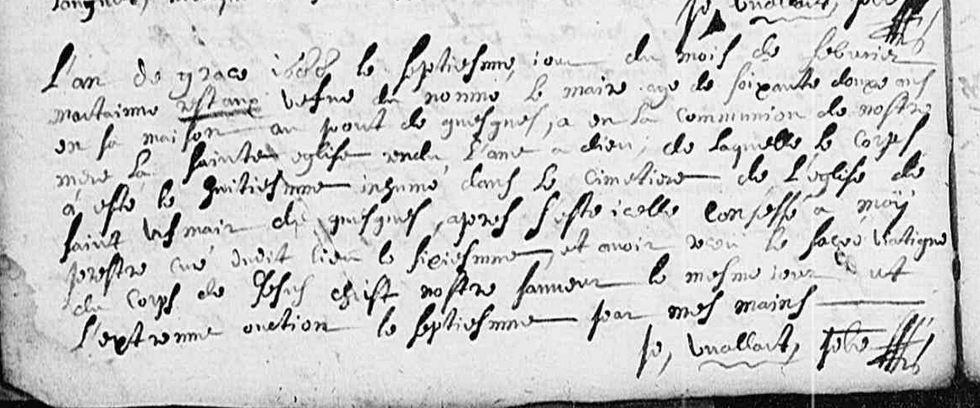 Naissance : calculée 1616 Décès : 7 février 1688 à Quesques 62240 ( Source )