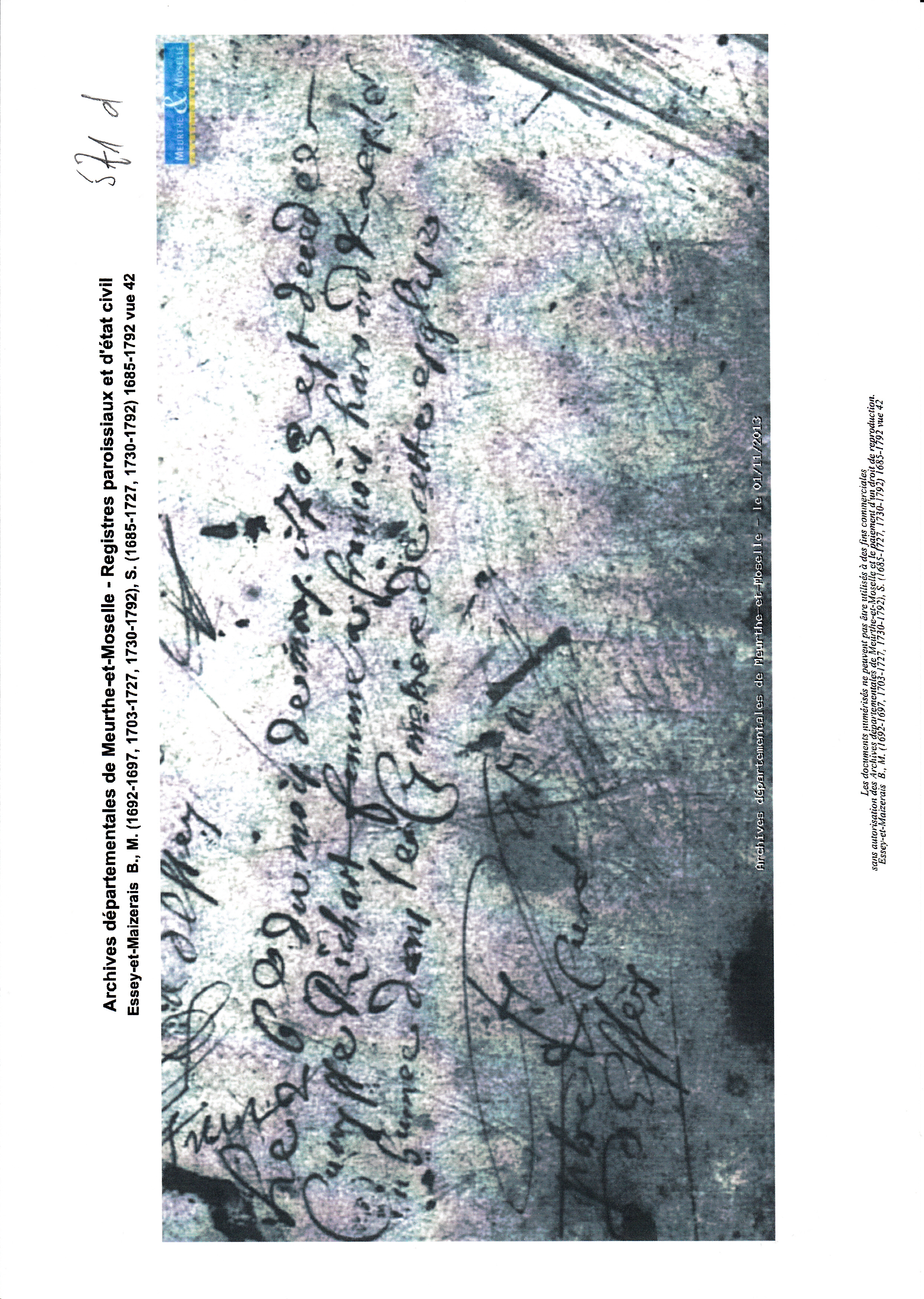 Naissance : vers 1670 Décès : 26 mai 1703 à Essey et Maizerais 54470 ( Source )