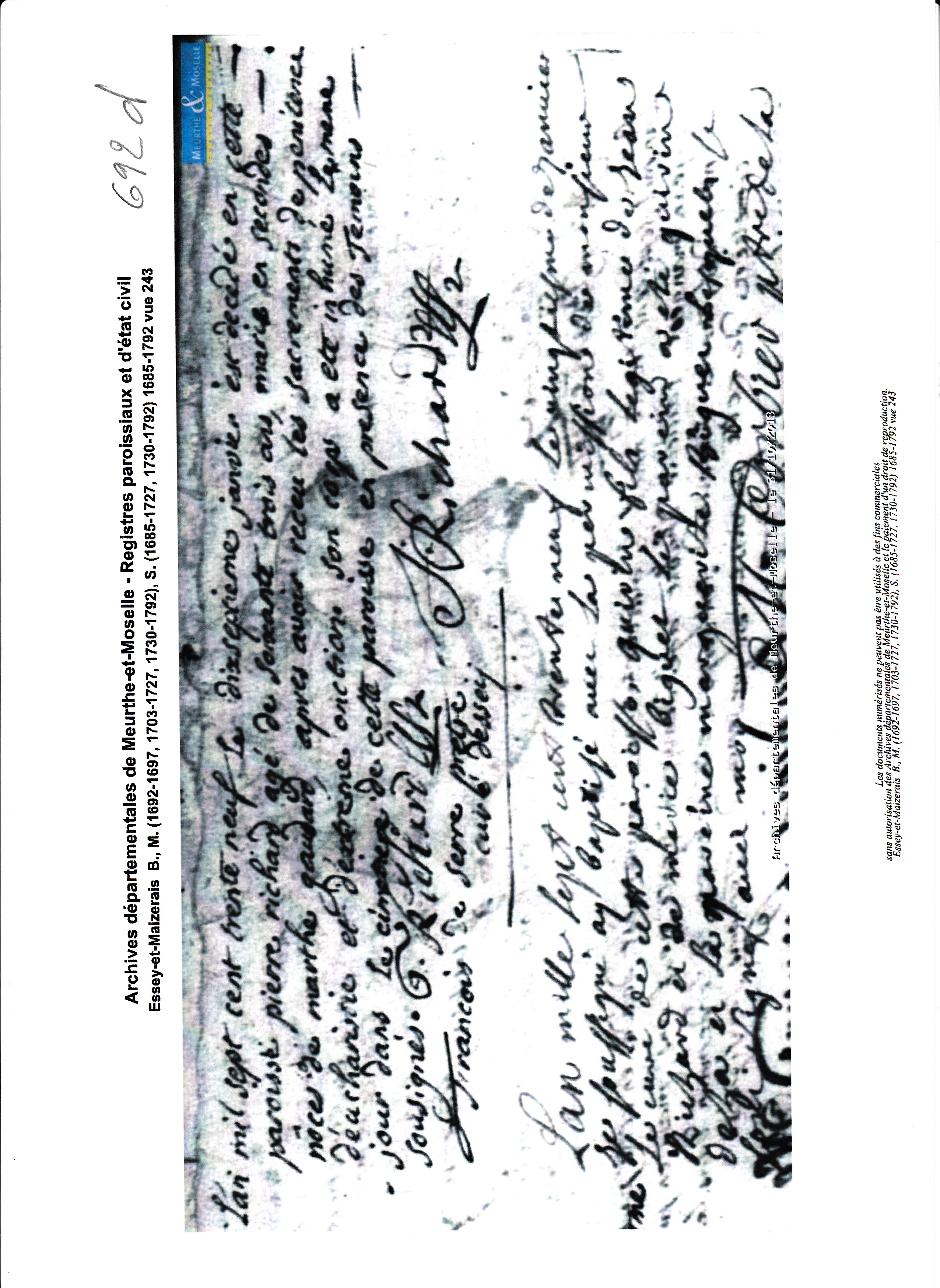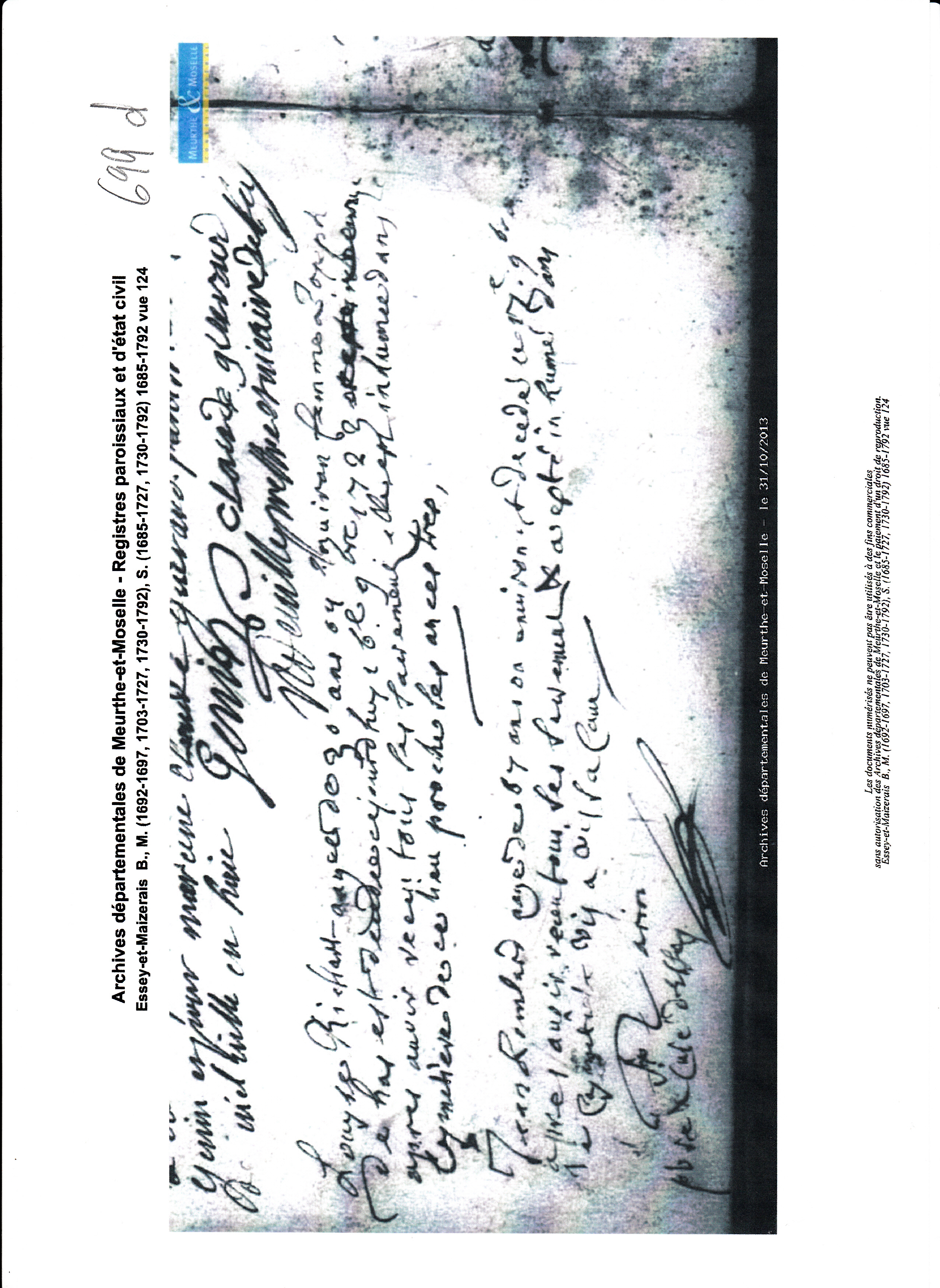 Naissance : vers 1676 à Essey et Maizerais 54470 Décès : 17 janvier 1739 à Essey et Maizerais 54470 ( Source )