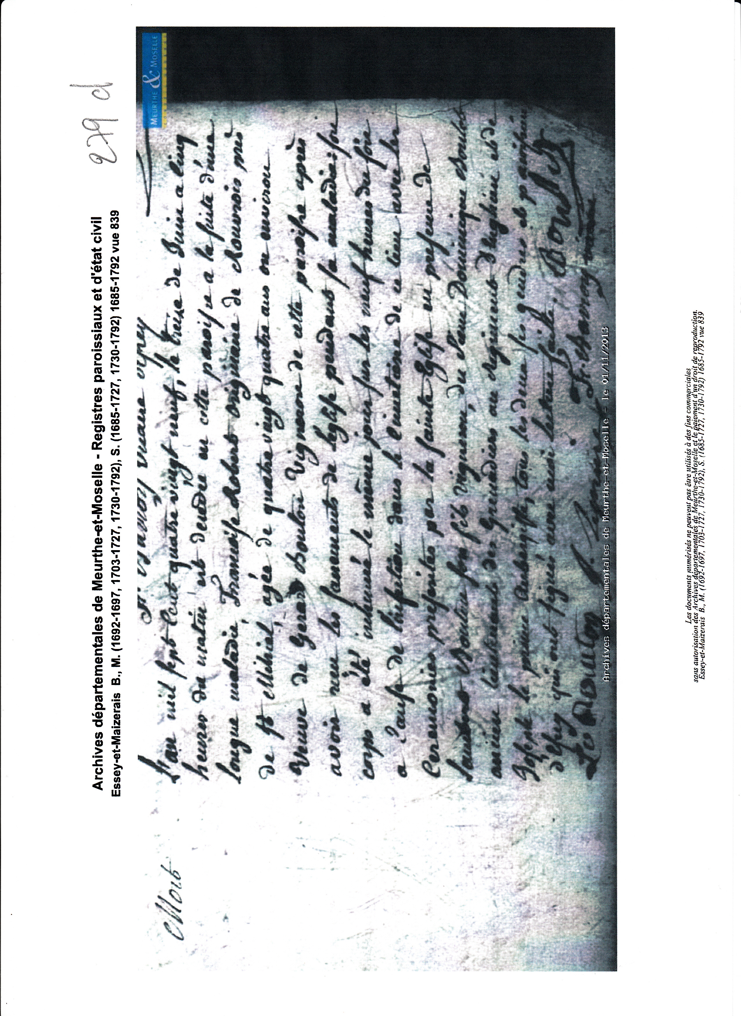Décès : 27 février 1742 à Noviant aux Pres 54380 ( Source )