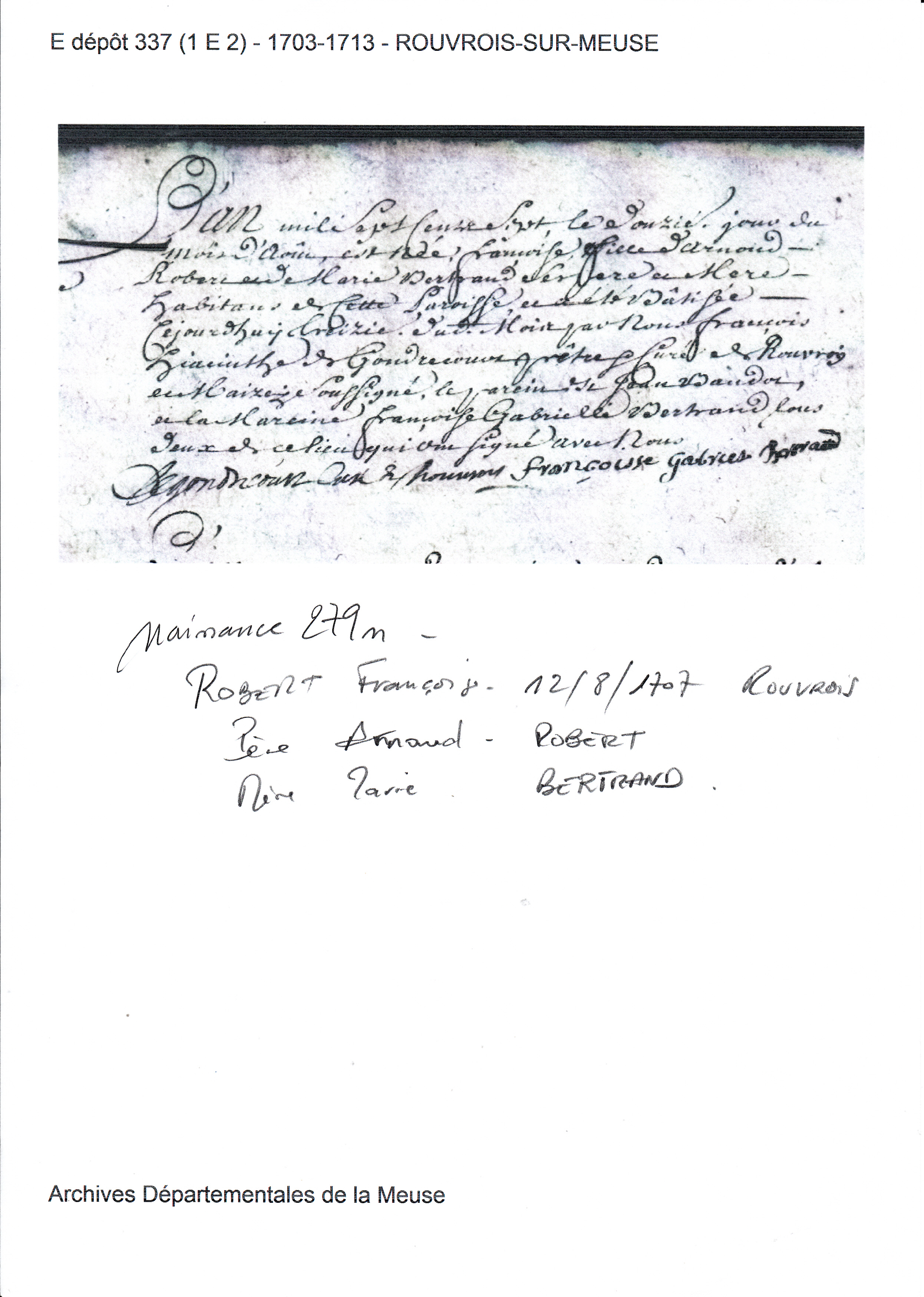 Naissance : 12 août 1707 à Rouvrois sur Meuse 55300 ( Source )