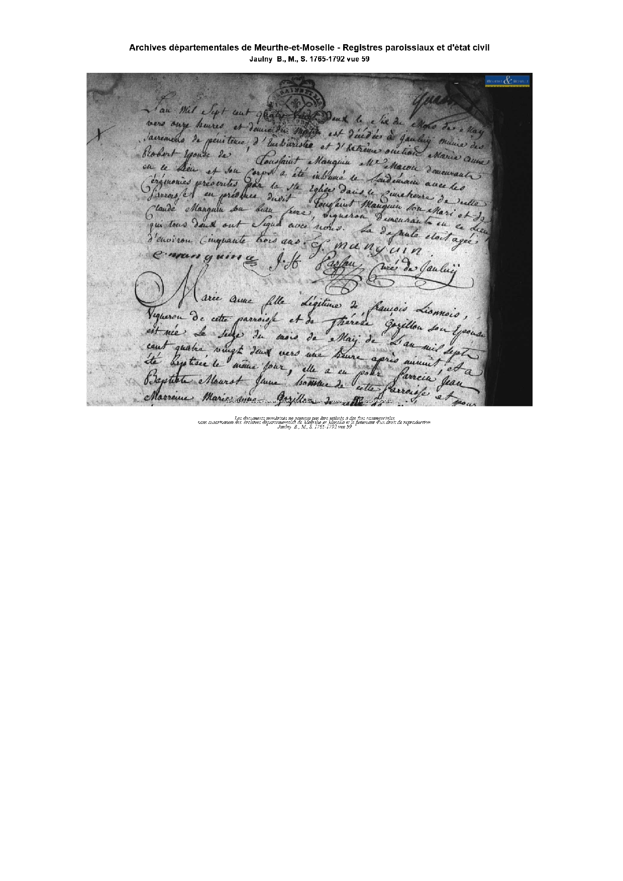 Décès : 6 mai 1782 à Jaulny 54470 ( Source )