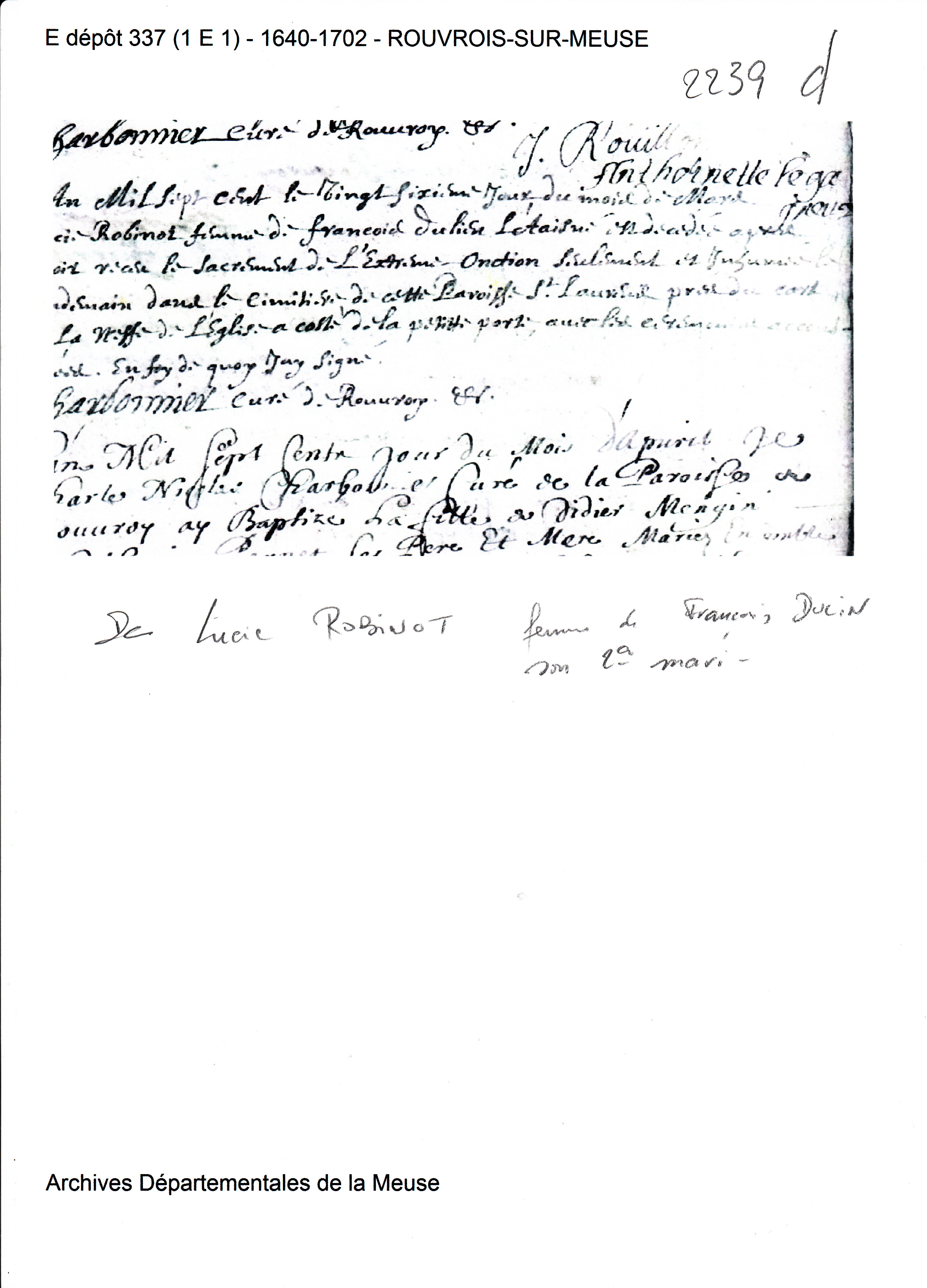 Décès : 26 mars 1700 à Rouvrois sur Meuse 55300 ( Source )