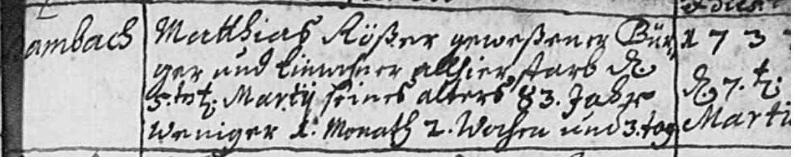 Naissance : 22 avril 1654 à Hinsbourg 67290 Décès : 5 mars 1737 à Waldhambach 67430 ( Source )