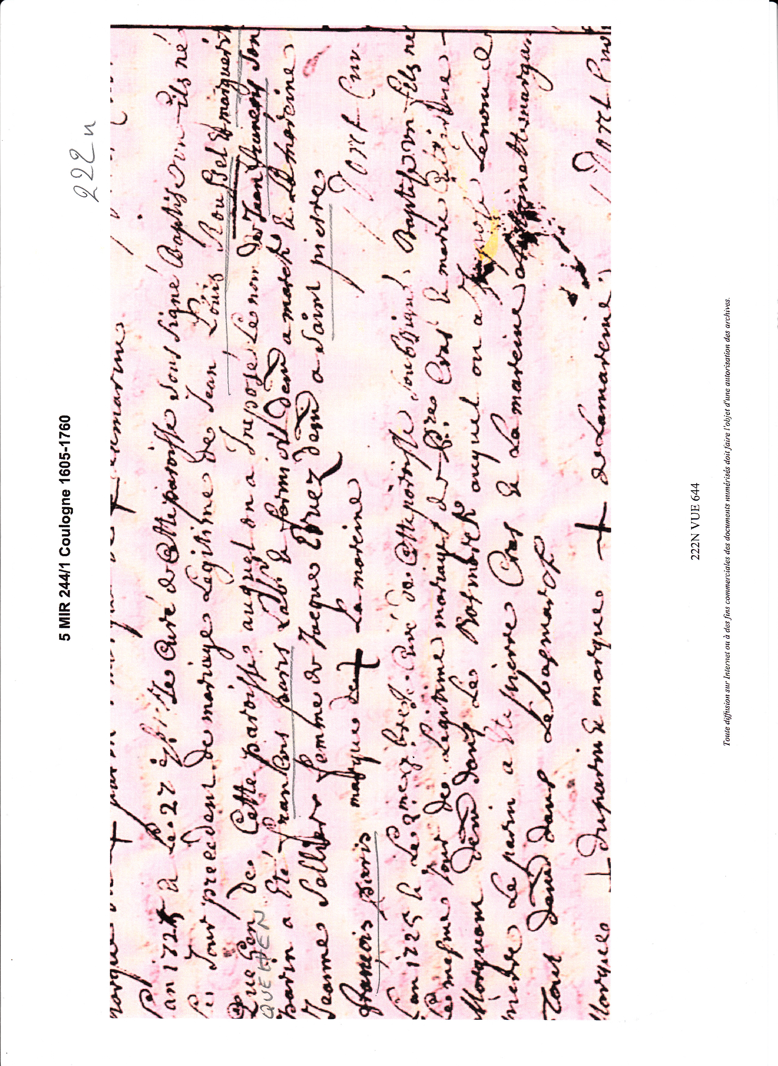 Mariage : 18 juin 1721 à Coulogne 62137 ( Source )