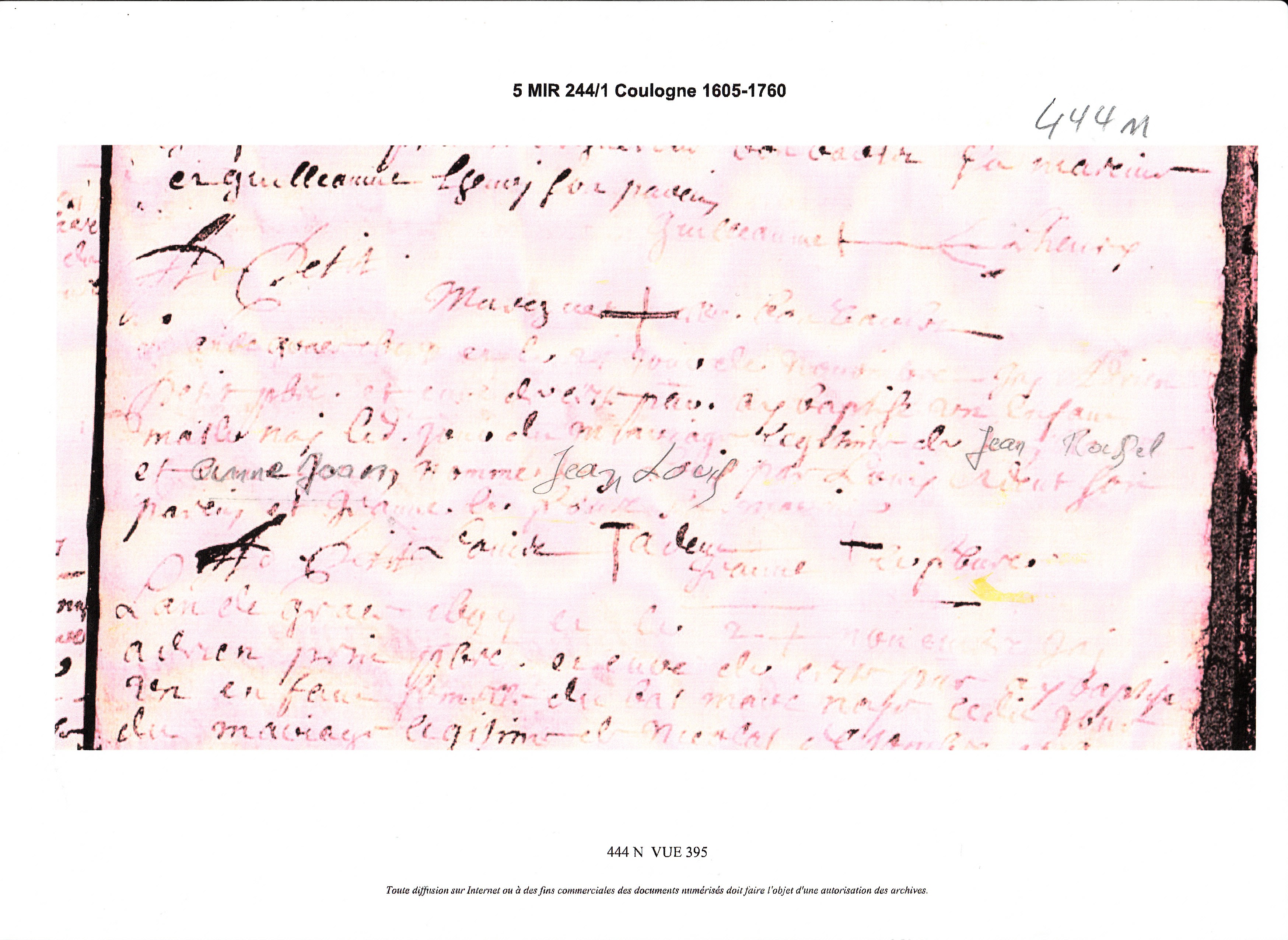 Mariage : 3 octobre 1695 à Coulogne 62137 ( Source )