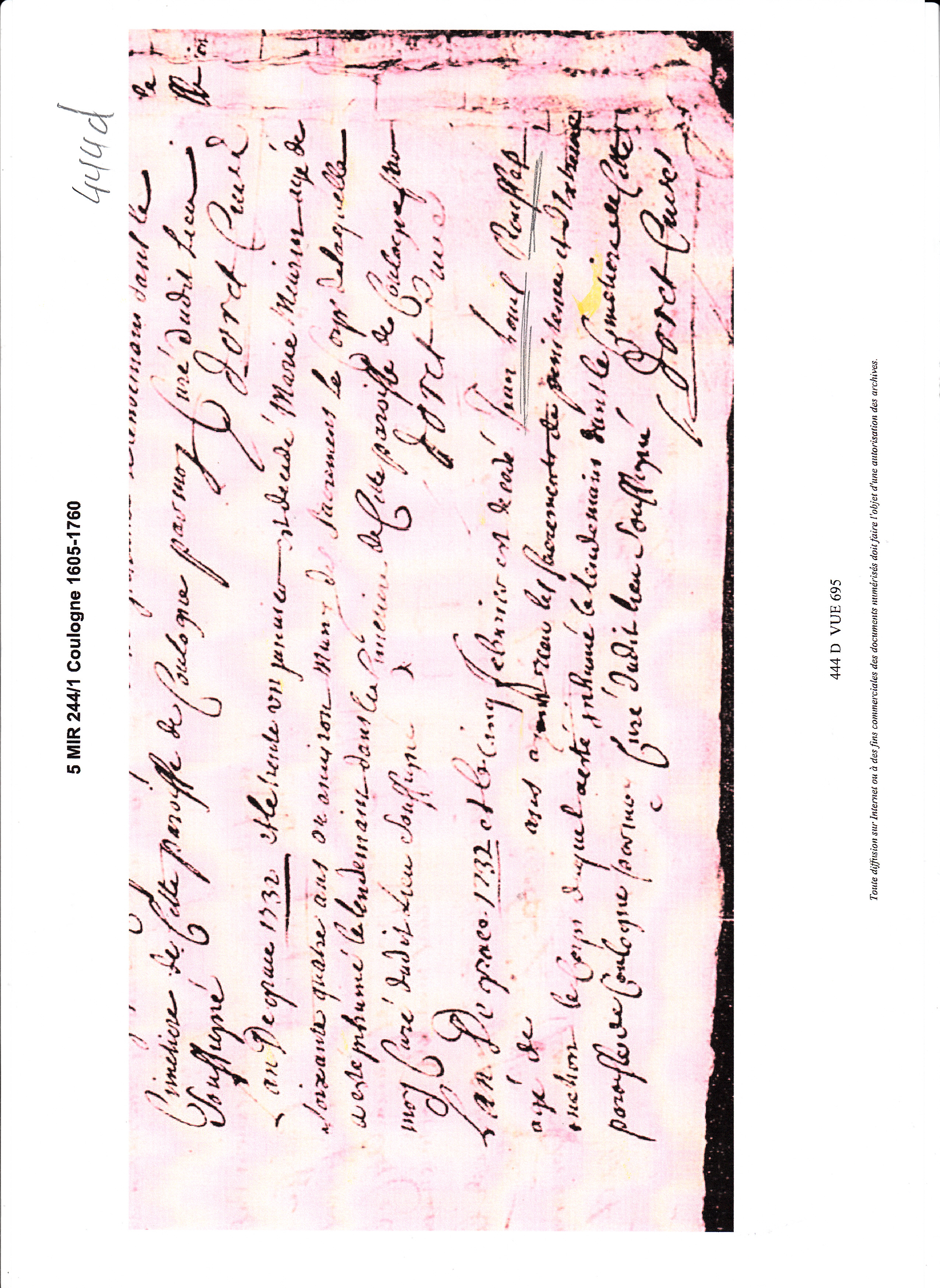 Décès : 5 février 1732 à Coulogne 62137 ( Source )