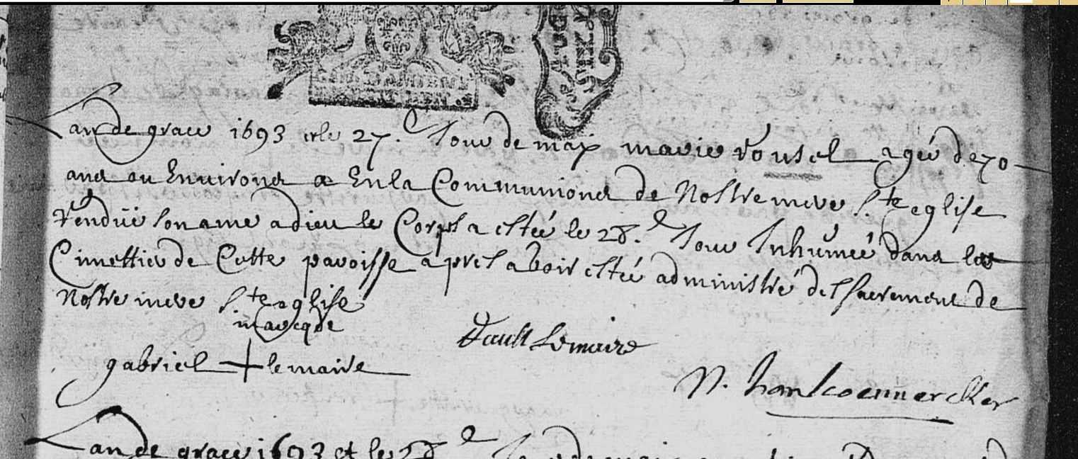 Enfant : LEMAIRE Gabriel ( 1653 - 1694 )