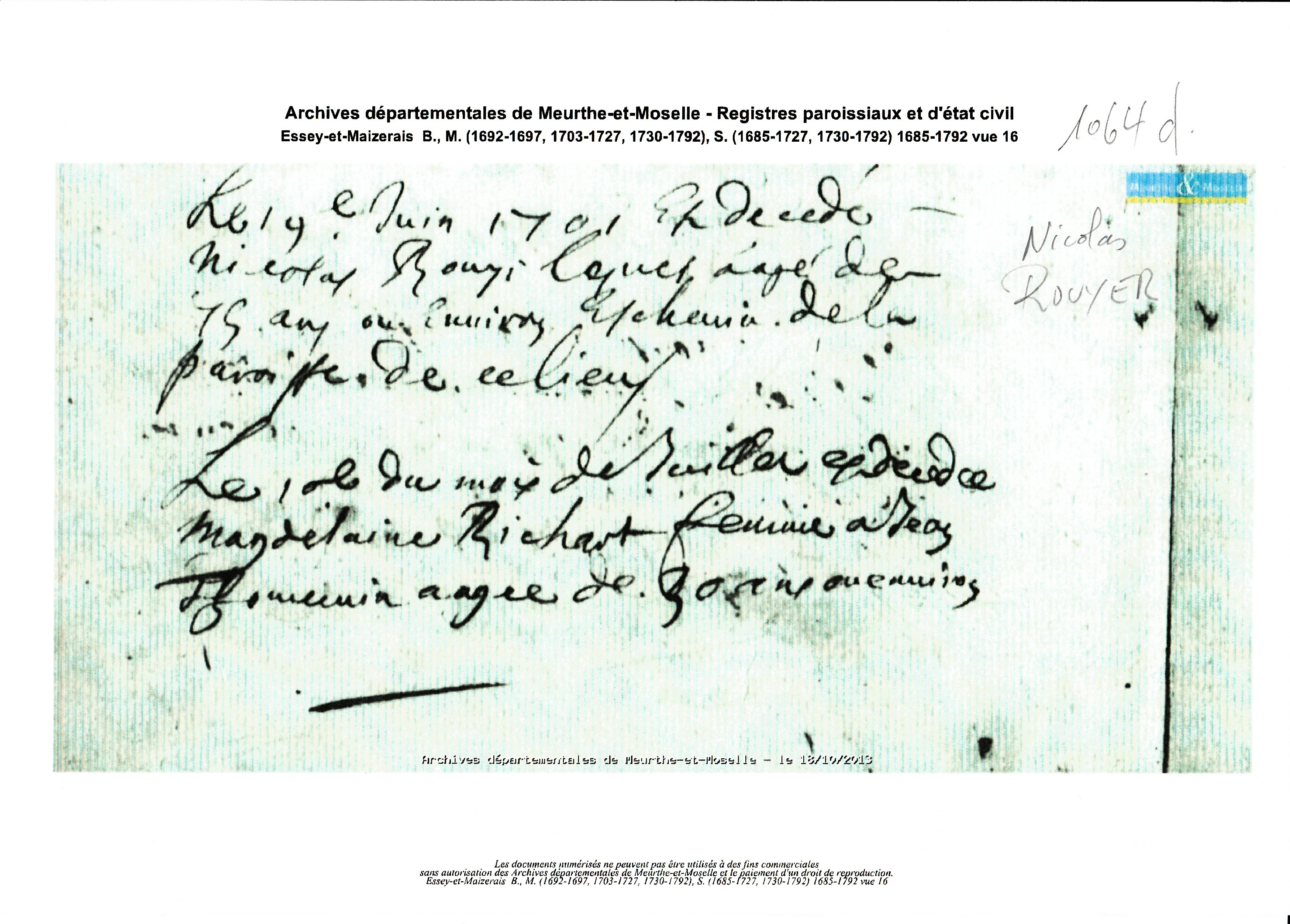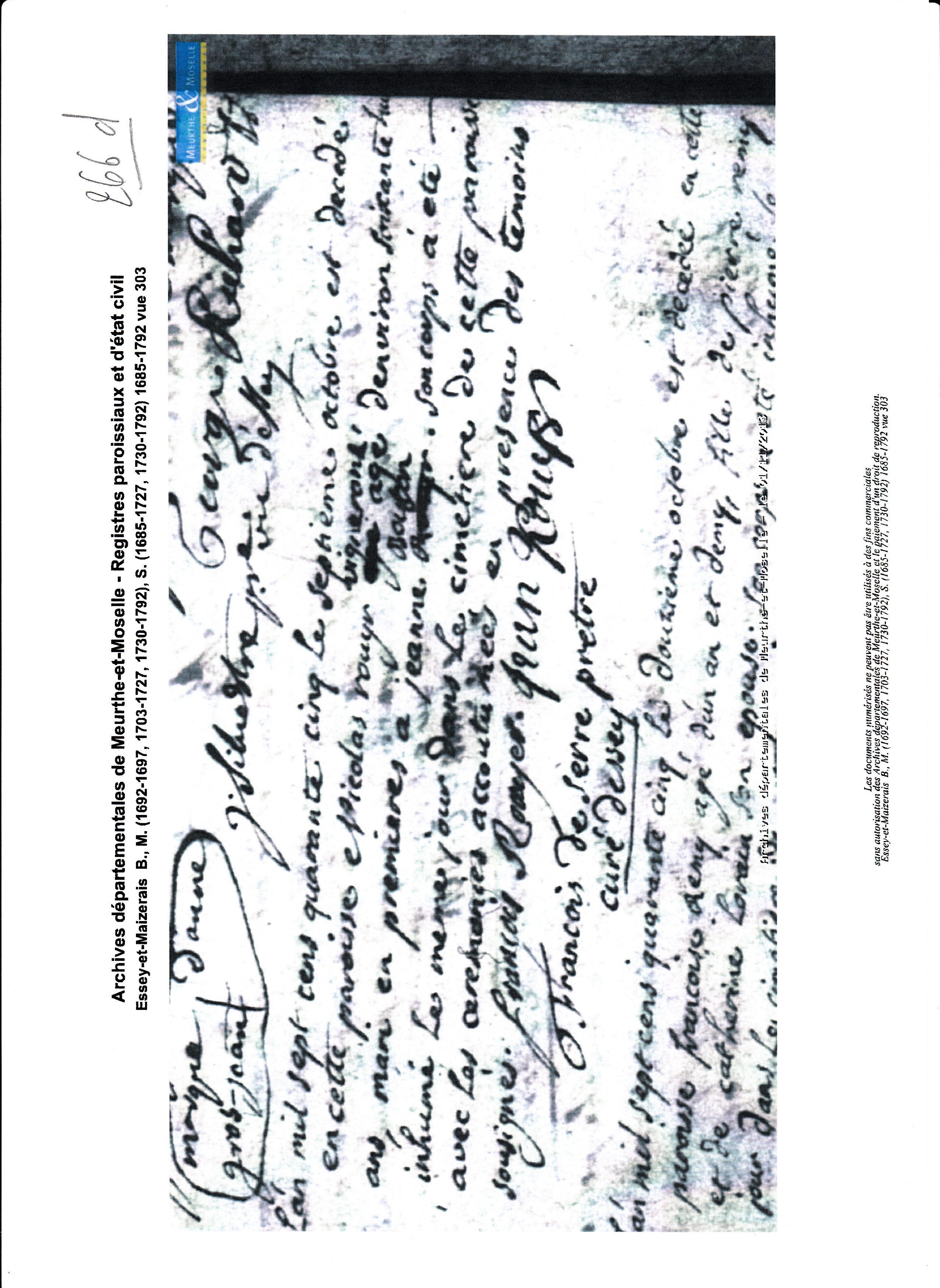 Décès : 4 août 1761 à Essey et Maizerais 54470 ( Source )