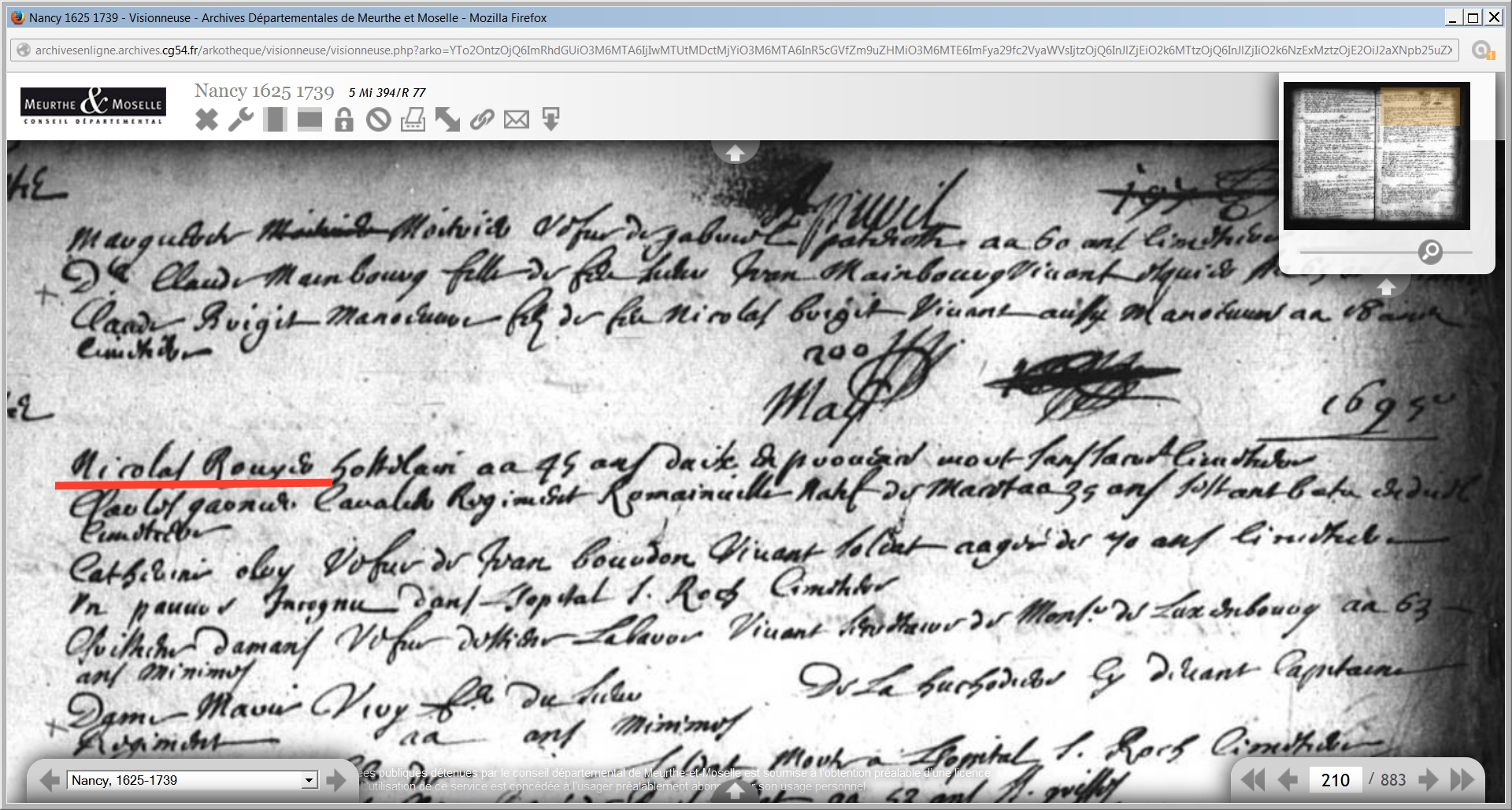 commence 1692Décès : 13 mai 1695 à Nancy 54000 ( Source )
