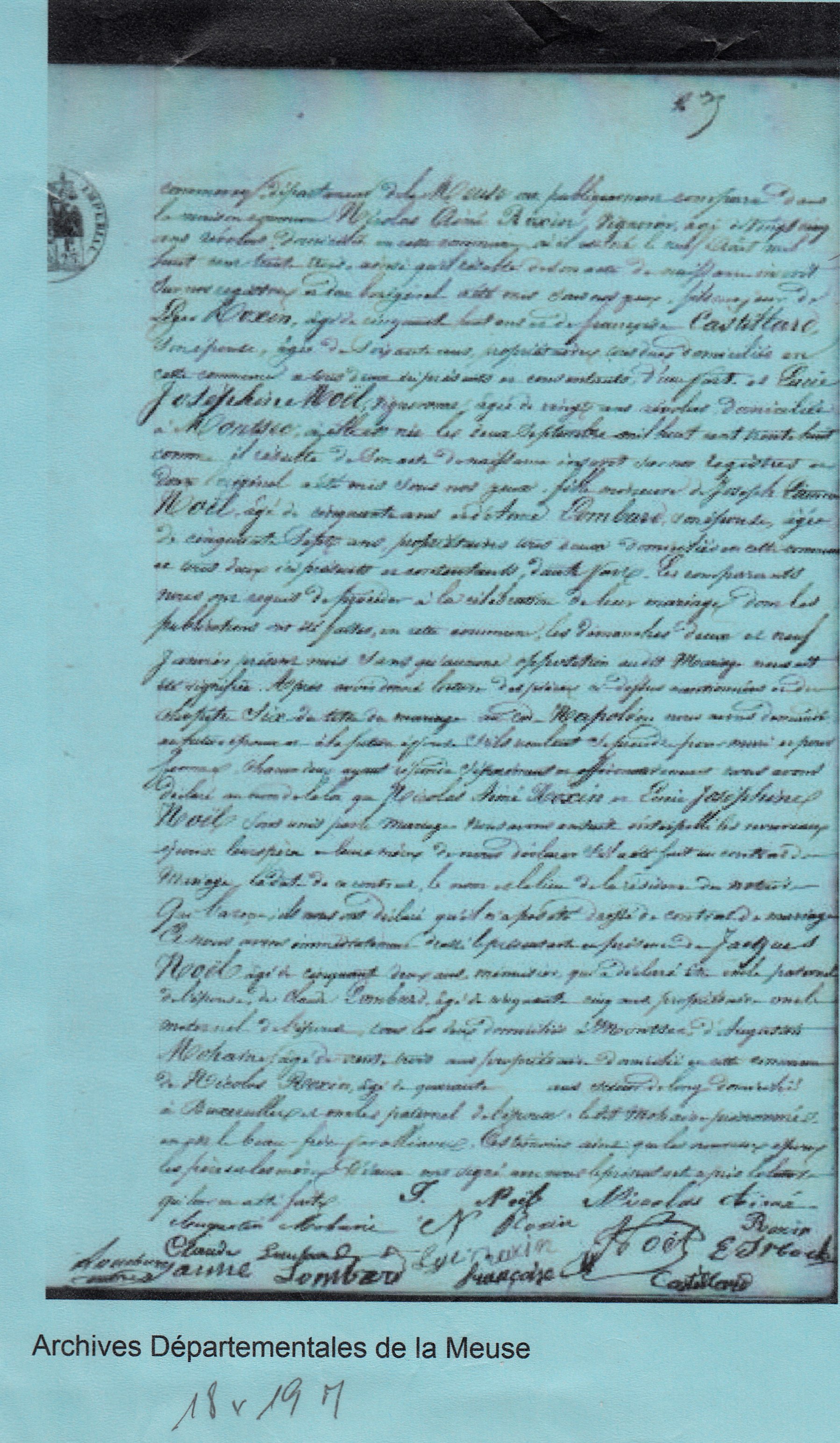 Union : NOEL Joséphine Lucie ( 1838 - > 1892 )