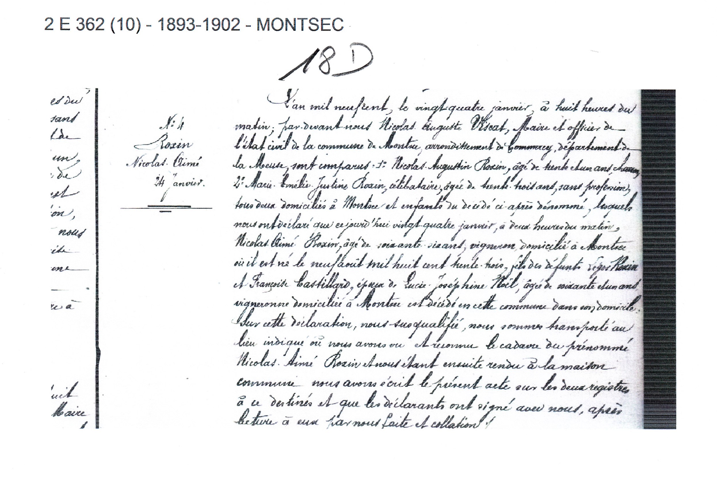 Témoins :ROXIN Nicolas Augustin ( (c) 1869 - ? )
