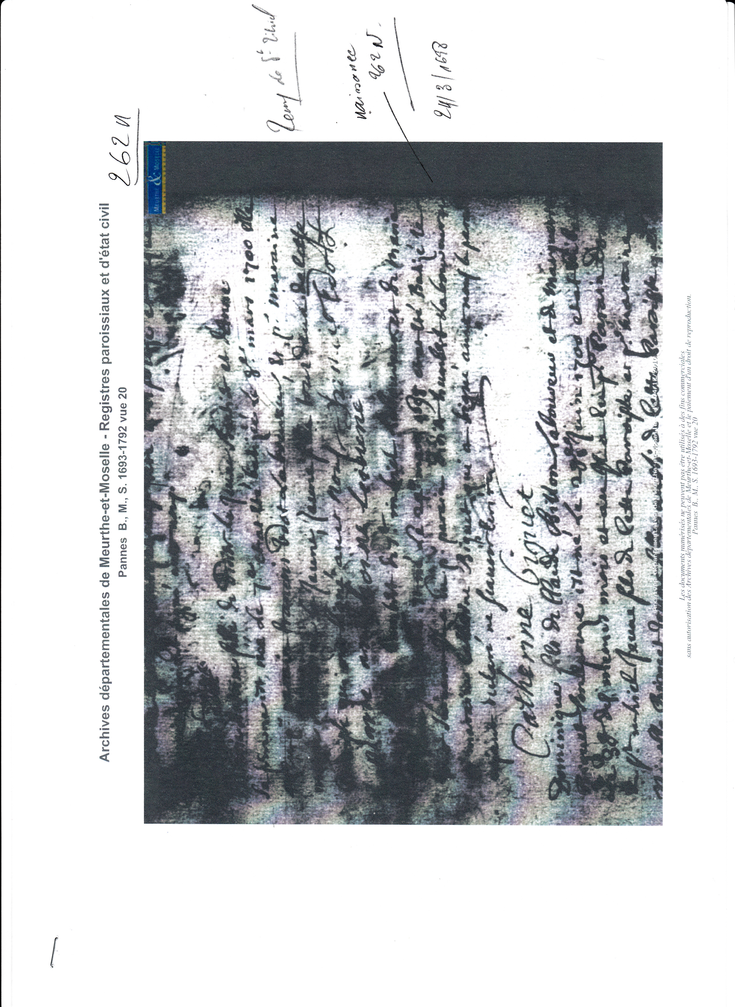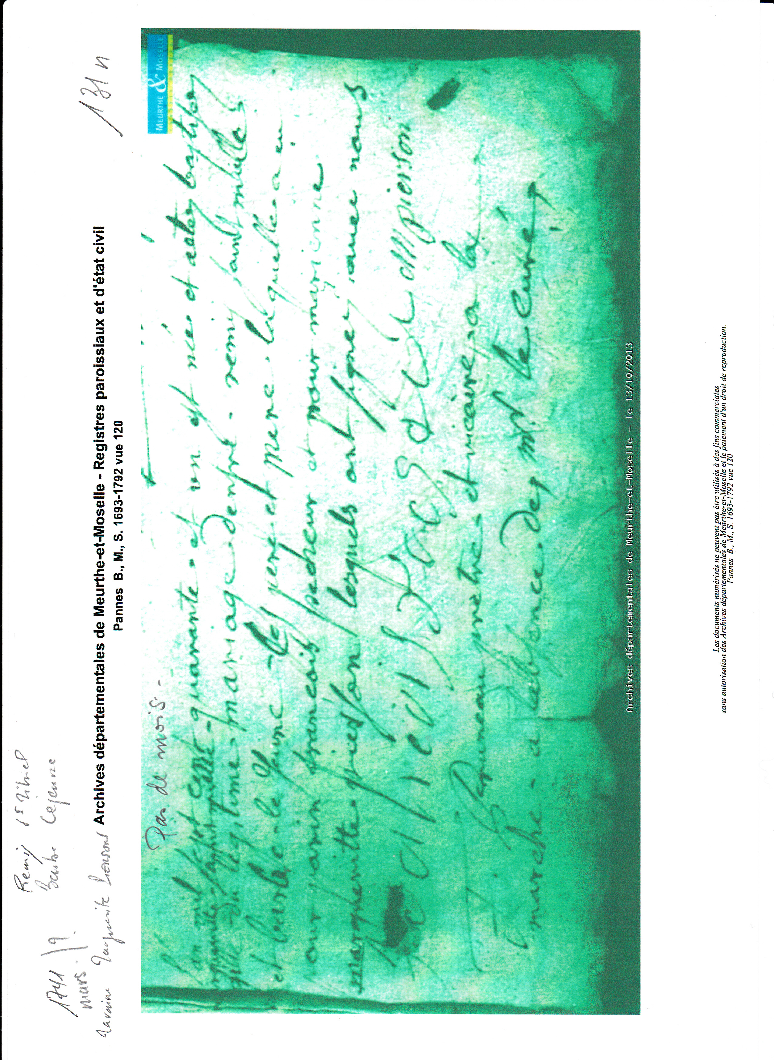 Mariage : 26 juillet 1707 à Pannes 54470 ( Source )